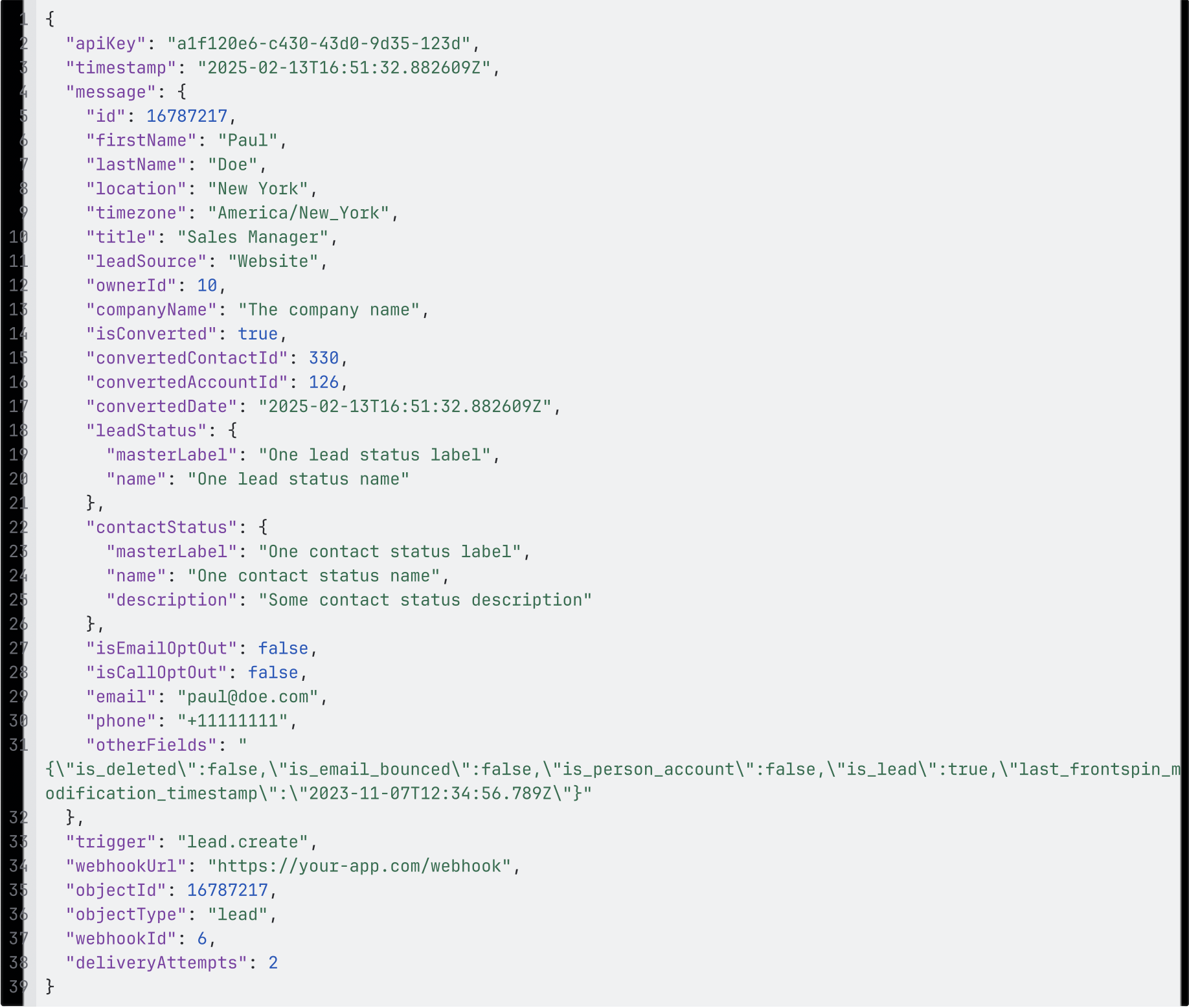 Webhooks allow you to receive real-time updates from FrontSpin when specific events occur. Once configured, FrontSpin will send a notification to your webhook URL every time a chosen trigger fires.