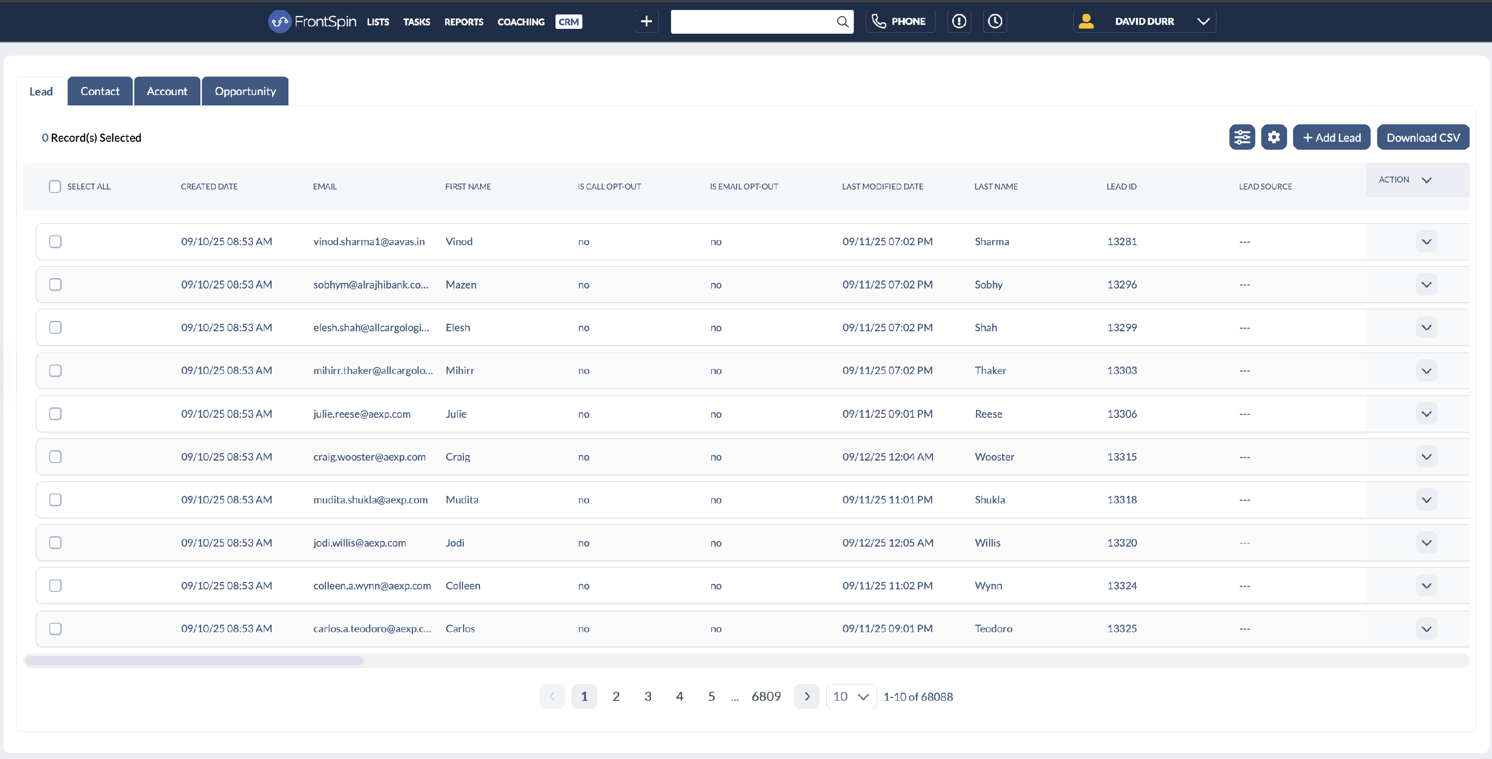 Imported records, including leads, contacts, accounts, and opportunities, now live directly in your Frontspin portal. You can manage them, organize them into lists, and make calls from the same workflow. This keeps all outreach and engagement data in one place, without switching tools.